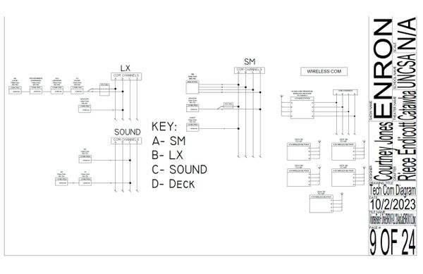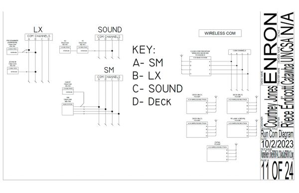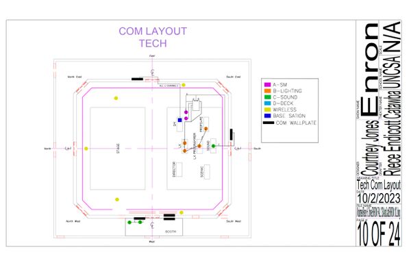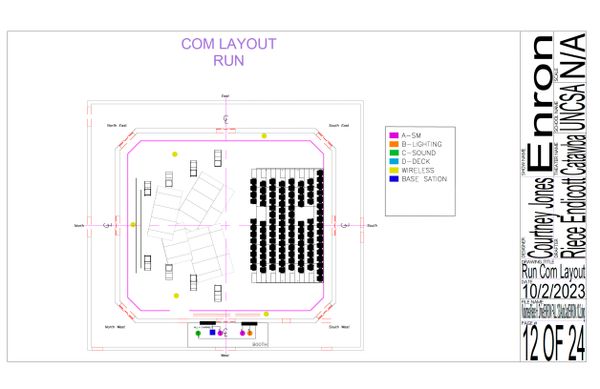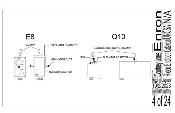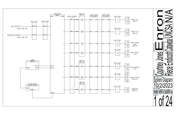 In my fourth year at UNCSA I was assigned to the Show Enron. This was a pivotal show for me as a designer because I got to put my skills to the test. Within my four years at this school, I have branched out and worked on many productions as a sound designer. This project in particular, I had the resources of the UNCSA sound department.For this project I chose to go for a more reflective sound system design. I learned about this while working as an A1 on a Dance show. My goal was to immerse the audience and I believe that was achieved. You can view an example of the system in the paperwork below.